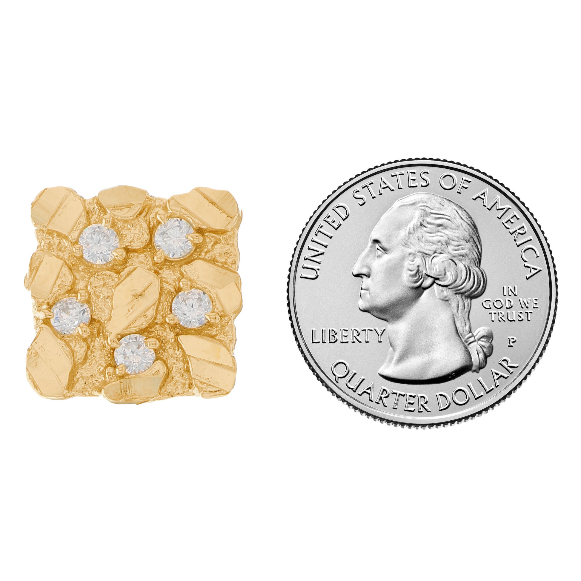 The 10k Yellow Gold Large Square Nugget White CZ Unisex Diamond Cut Earring by emgeedi is a stunning piece of jewelry that exudes luxury and style. Made in the USA at a California based factory, this earring features 10 round shaped Synthetic White CZ stones that sparkle and shine with every movement. Crafted from high-quality 10k Yellow Gold, this earring is durable and long-lasting, making it the perfect addition to any jewelry collection. Whether you're dressing up for a special occasion or just want to add a touch of glamour to your everyday look, this earring is sure to turn heads and make a statement. Add a touch of elegance to your ensemble with the 1ok Yellow Gold Large Square Nugget White CZ Unisex Diamond Cut Earring by emgeedi.